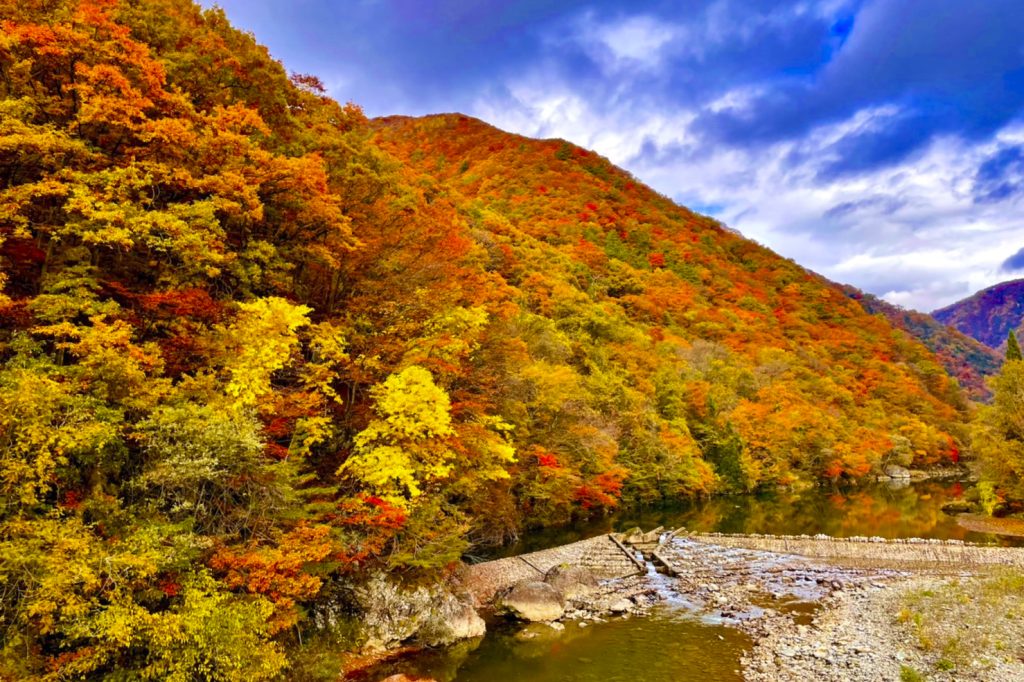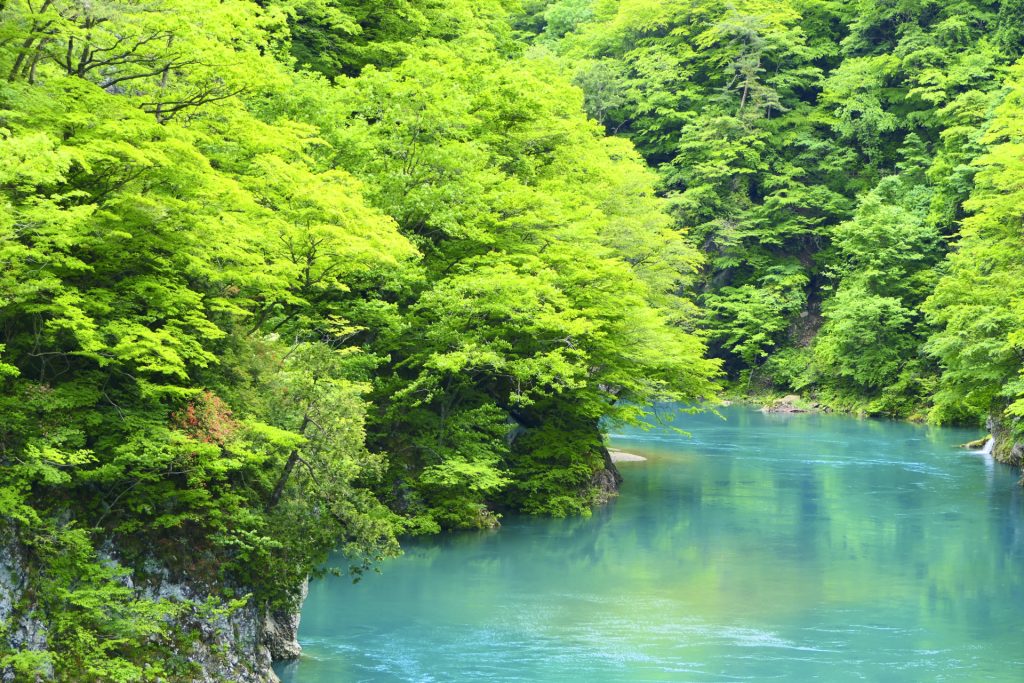 東北の耶馬渓(やばけい)と呼ばれる、新緑と紅葉の名所です。渓谷の清流が美しく、山桜や楓の原生林の素晴しい景観に包まれます。